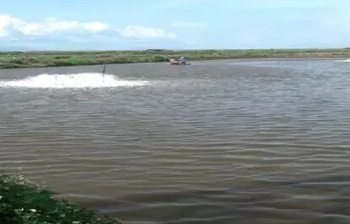 图2鲮鱼苗培育池水蚤繁殖过度引发的水体发红
