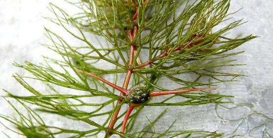 2.金鱼藻。金鱼藻具备耐高温、蟹喜食、再生才能强的长处,缺点是旺发易臭水。依据这一特征,金鱼藻更合适在大水面中栽培。而且水草旺发时,要适当把它稀薄,避免其过密后无法进行光合作用而出现死草臭水现象。