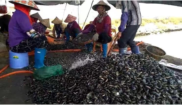 福建沿海有些沙质底的土池,到了冬天,就以养花蛤、斑节虾为主,也套养河豚或是鳗鱼。 莆田的王老板,15亩的土池,2018年放养花蛤、斑节虾,定期用