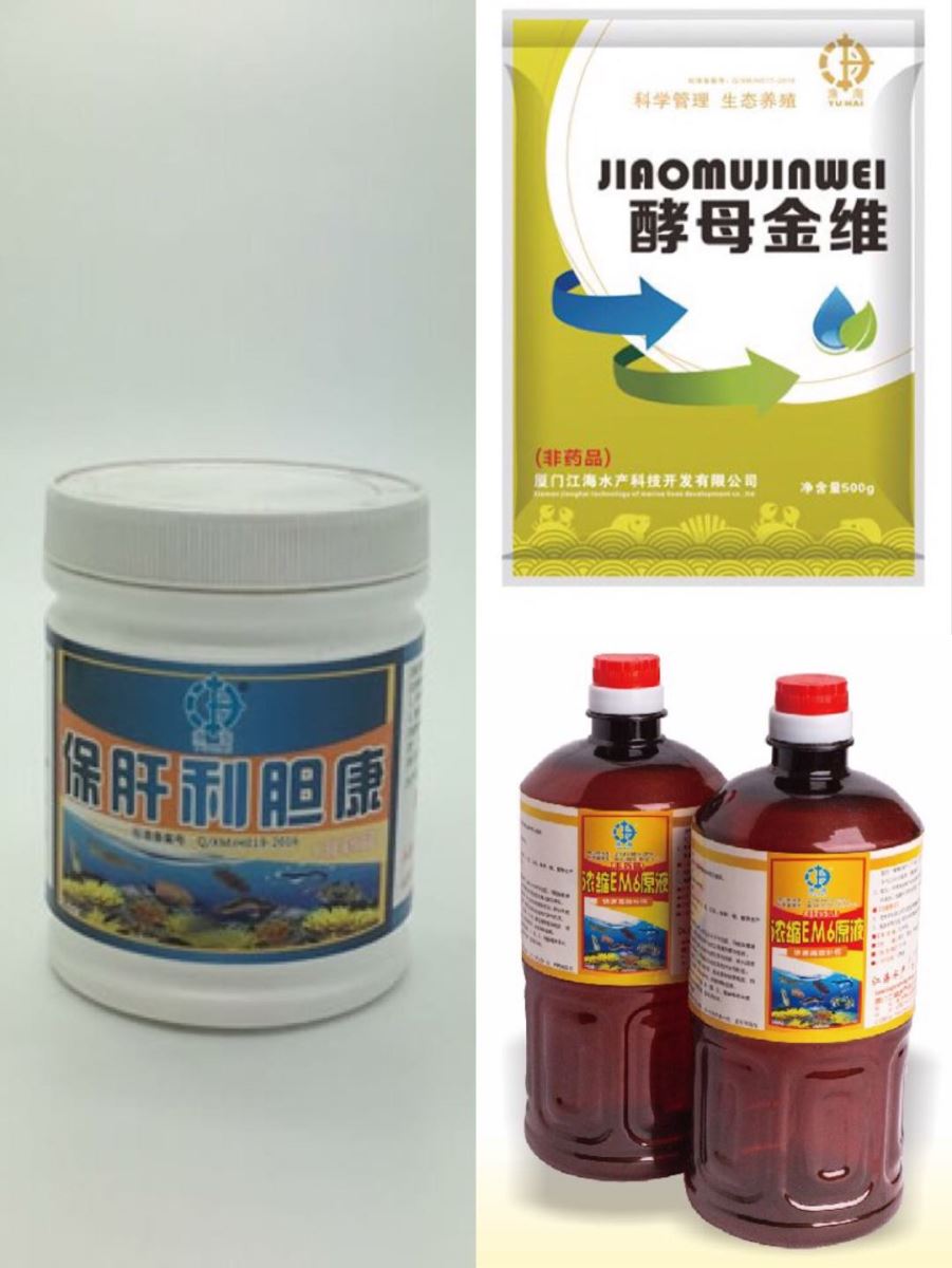 福建漳浦六鳌王老板,虾放了一个多月,连续几天料台都有发现病虾,表现为空肠空胃、肝脏萎缩,且肌肉萎缩严重(棉花虾),其他大部分的虾都有轻微病症,体表黑色素很多,肌肉轻微萎缩、肠道积水、肝脏萎缩等。这样症状的虾平时都会偷死,生长速度缓慢,具有慢性感染的特征,水质化验正常,排除了孢子虫引起的症状,建议添加保肝利胆康+酵母金维+高浓缩em6原液,一套拌料40斤,连喂7天,虾肠道比较饱满,没再增加瘦肉虾;再喂3-5天,肠道结实无积水,摄食量也提上来了;投喂2星期后停药,此时肠道饱满结实,摄食量稳定,肝胰腺正常。